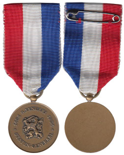 Het is een ronde bronzen medaille, 21 millimeter in diameter, met boloog en ring. De voorzijde vertoont de Nederlandse leeuw met zwaard en pijlenbundel met de aan weerszijden door een * gescheiden randschriften: '1464 9 JANUARI 1964' (boven) en 'STATEN-GENERAAL' (onder).