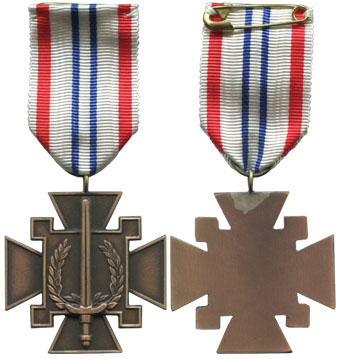 Het Kruis is door middel van een ring verbonden aan een lint ter breedte van 28 millimeter. Het lint is opgebouwd uit de volgende kleuren: aan de boorden een witte baan van 2 millimeter, gevolgd door een rode baan van 3 millimeter, een witte baan van 6 millimeter en een blauwe baan van 1,5 millimeter, in het midden bevindt zich een witte baan van 3 millimeter.