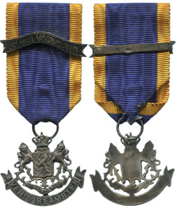 Bij leden van verdienste wordt op het lint een zilveren gesp, in de vorm van een gedrapeerd lint, gedragen met het opschrift: "LID VAN VERDIENSTE". Ik ga ervan uit dat dit tevens geldt voor "ERELID".